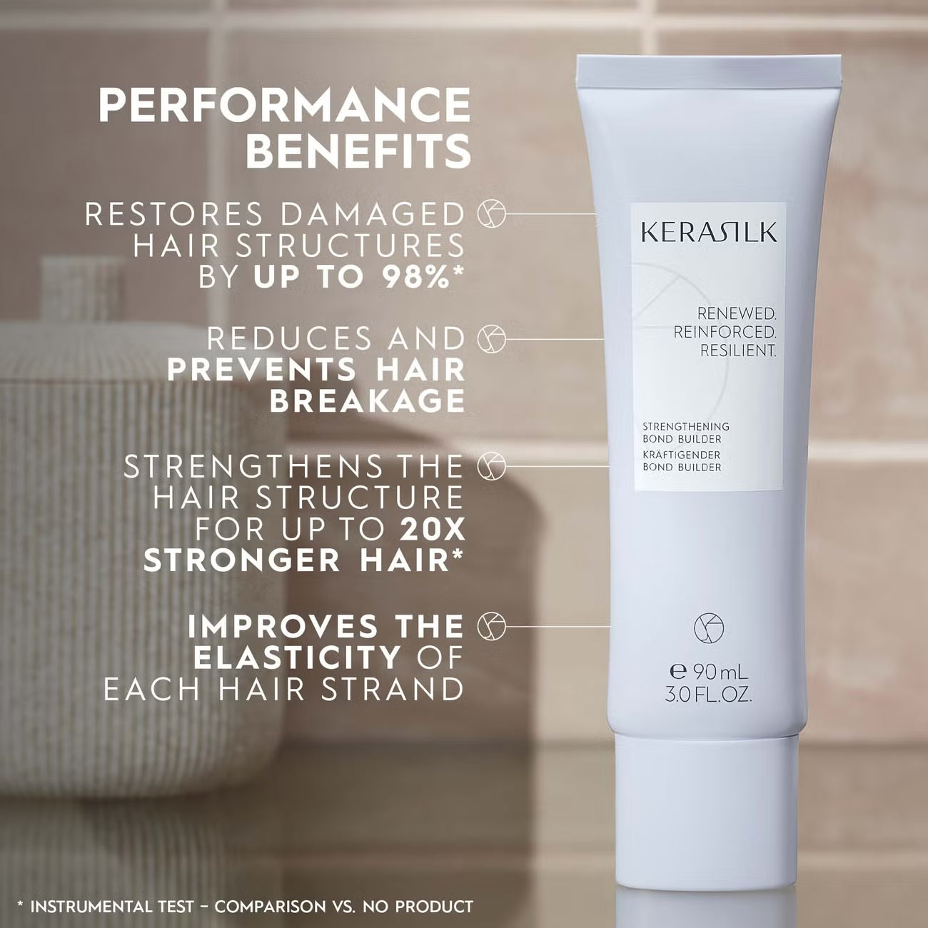 Kerasilk Strengthening Bond Builder gør det nemt at genopbygge og beskytte skadet hår, så det bliver sundt, stærkt og glansfuldt hver dag.