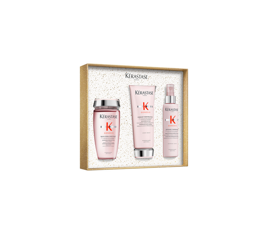 Forkæl dig selv eller en, du holder af, med det smukke Kérastase Genesis gavesæt, perfekt som gave til højtider, fester og fødselsdage. Sættet er skabt til dig, der oplever svækket hår, hårtab eller tendens til knækkede hårstrå, og som ønsker stærkere, sundere og mere modstandsdygtigt hår.
