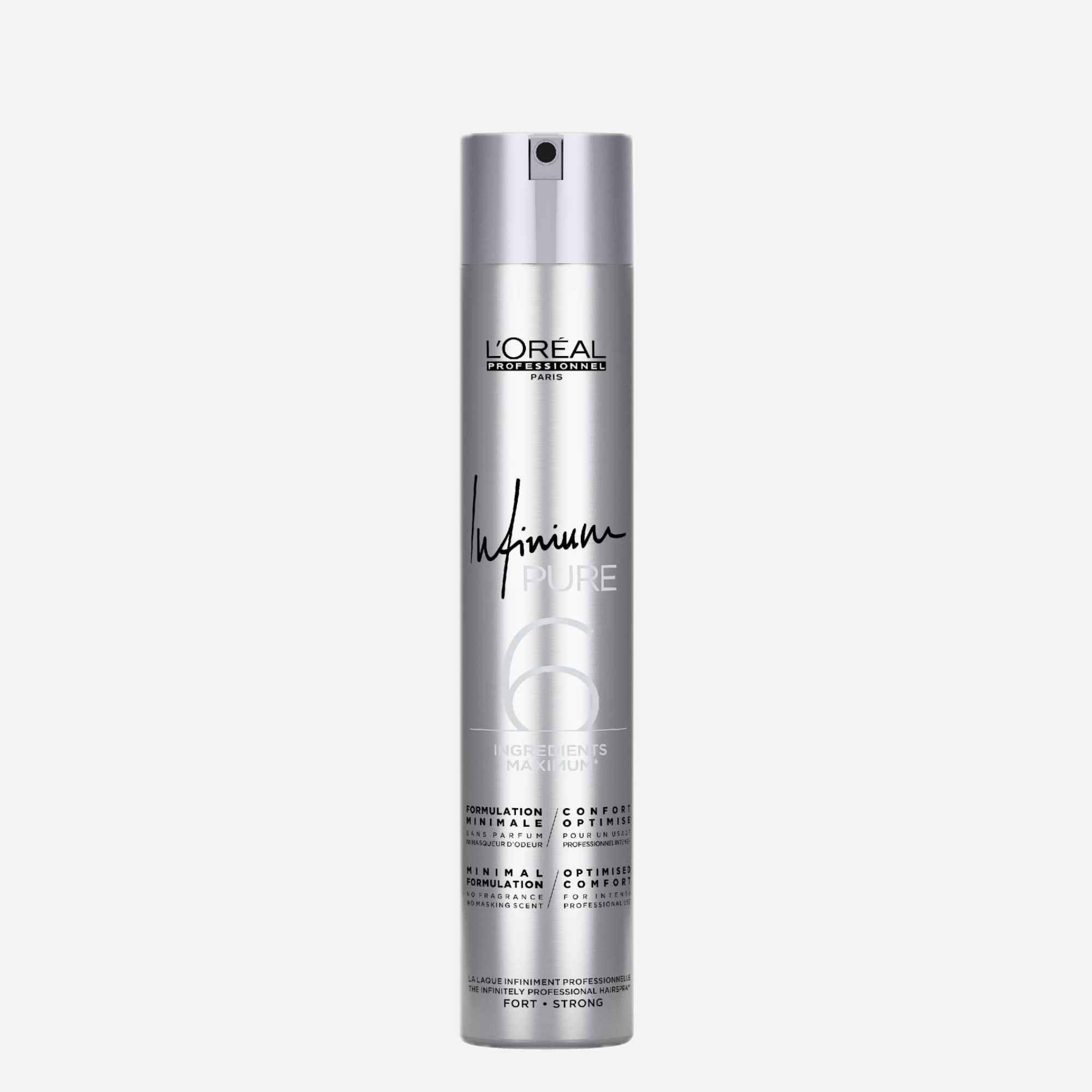 L'Oréal Professionnel Infinium Strong Hårspray er en professionel hårlak, skabt til dig, der ønsker langvarigt og stærkt hold uden at håret bliver stift. Den ultralette, parfume-fri formel giver øjeblikkeligt kontrol, tilfører glans og efterlader ingen duft i hår eller salon. Perfekt til både frisører og dig, der ønsker salonresultater derhjemme.