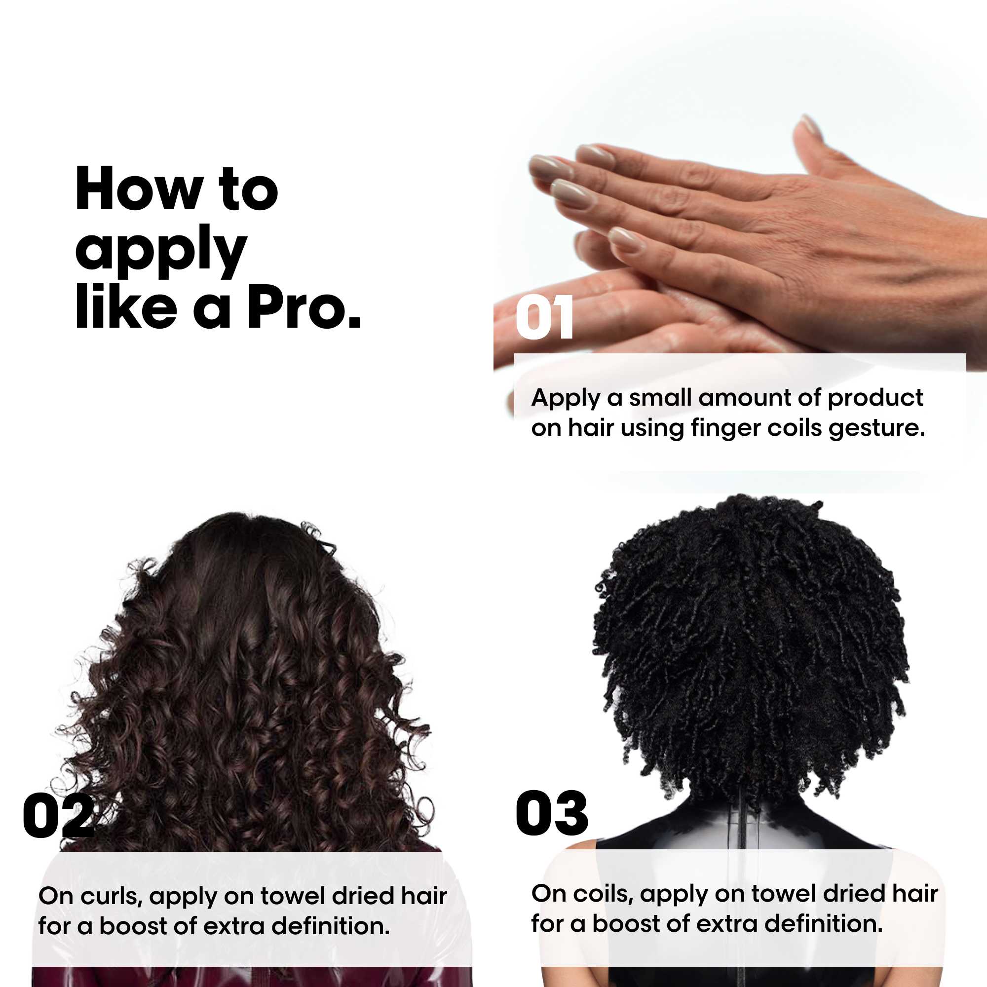Den cremede gelétekstur absorberes hurtigt, så krøllerne efterlades bløde, definerede og fri for frizz. Med indhold af glycerin og urea H hjælper den med at bevare fugten i hårfibrene og styrke håret indefra.