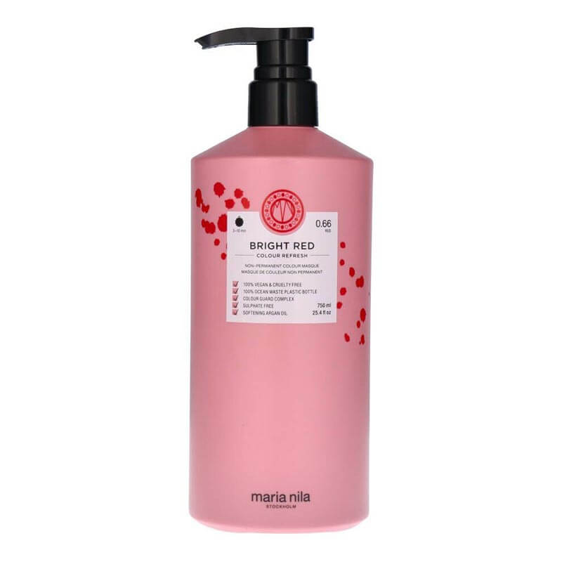 Maria Nila Colour Refresh Bright Red er en intens hårkur indeholdende farvepigmenter, som perfekt opfrisker din hårfarve eller skaber et helt nyt look.