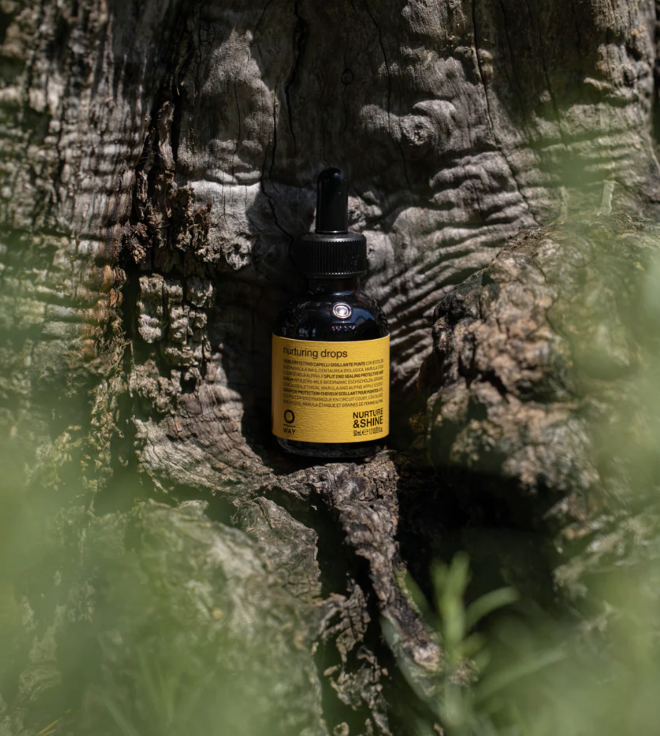 Oway kombinerer biodynamiske og økologiske ingredienser med avanceret hårplejeteknologi. Glossy Nectar indeholder økologiske olier, der nænsomt fugter og giver håret glans, uden at det bliver tungt. Smoothing Cream hjælper med at udglatte hårfibrene, kontrollere frizz og tilføre blød tekstur til håret. Nurturing Drops styrker og reparerer hårstråene indefra, samtidig med at de beskytter mod ydre påvirkninger som forurening og styling. Hvert produkt er udviklet med fokus på bæredygtighed lige fra biodynamiske og økologiske ingredienser til mere miljøvenlig emballage.