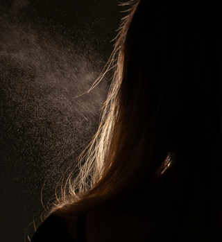 1. Spray din saltvandsspray i tørt hår med den ene hånd, mens du krammer løs med den anden. Der skal bruges langt mere saltvandsspray, end du måske lige regner med – det skal vædes helt igennem.