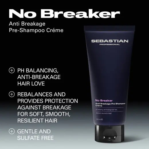 Sebastian Professional No Breaker Pre Shampoo er en styrkende pre-shampoo behandling, udviklet til hår, der er belastet, kemisk behandlet eller tilbøjeligt til at knække. I stedet for kun at reparere efter vask, arbejder denne behandling allerede før shampoo for at beskytte hårfibrene og reducere risikoen for brud.