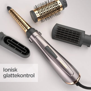 En varmebørste, også kaldet en airstyler, kombinerer funktionerne fra en hårtørrer og en stylingbørste, så du kan tørre og forme håret på én gang. Det gør den ideel til dig, der ønsker en hurtig og effektiv stylingrutine med et glansfuldt og velplejet resultat.